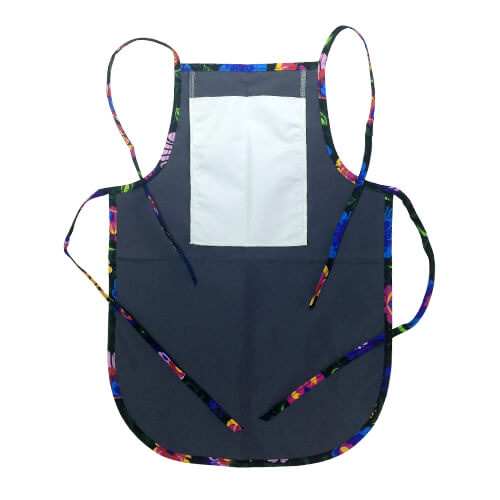 Dječja siva kuhinjska pregača s bijelim džepom za sublimacijski tisak.