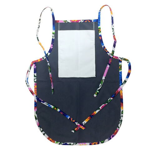 Dječja siva kuhinjska pregača s bijelim džepom za sublimacijski tisak.