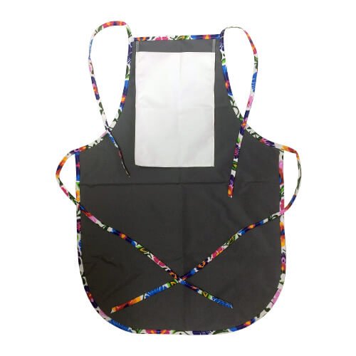 Siva kuhinjska pregača s bijelim džepom za sublimacijski tisak.