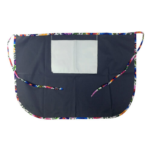Klasična kuhinjska pregača s džepom za printanje - siva s obojenim rubom - bijelo slavensko cvijeće