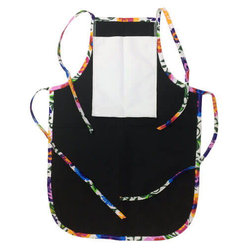 Dječja crna kuhinjska pregača s bijelim džepom za sublimacijski tisak.