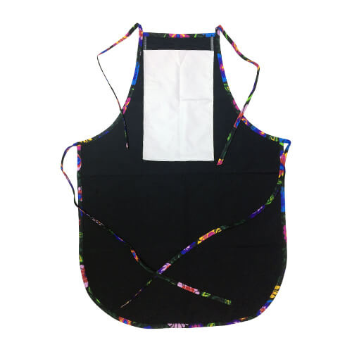 Crna kuhinjska pregača s bijelim džepom za sublimacijski tisak.