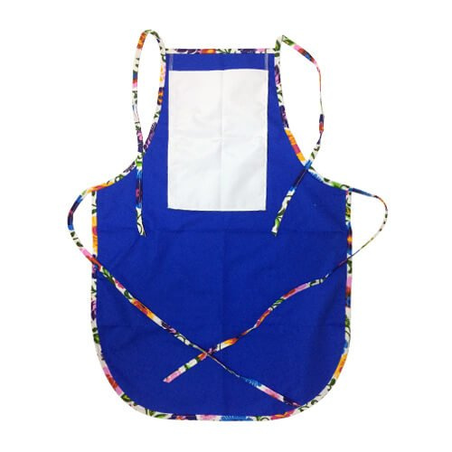 Plava kuhinjska pregača s bijelim džepom za sublimacijski tisak.