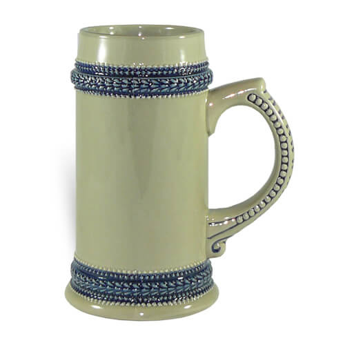 Siva keramička šalica s plavim ornamentom, klasa A+ /provjerite što ovu klasu čini drugačijom od ostalih/ presvučena slojem poliestera za sublimacijski tisak.