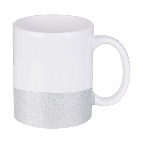 Šalica od 330 ml s glitter prugom za sublimaciju - srebrna