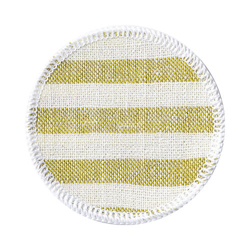 Podmetač za šalice od lana Ø 10 cm, krem sa svijetlozelenim prugama, pogodan za sublimaciju