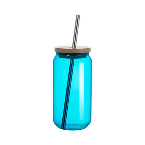 Čaša od 550 ml sa slamkom i bambusovim poklopcem za sublimaciju - tirkizna