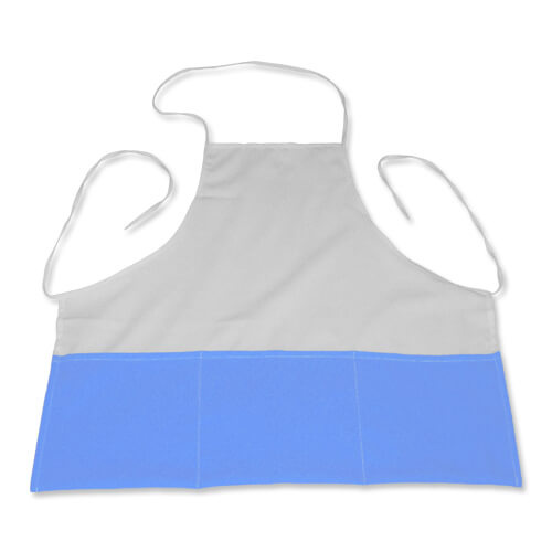 - "Čista" bijela kuhinjska pregača s plavim džepovima za sublimacijski tisak.