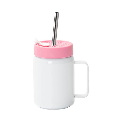 Čelična šalica od 480 ml s ručkom i ružičastim silikonskim poklopcem za sublimaciju