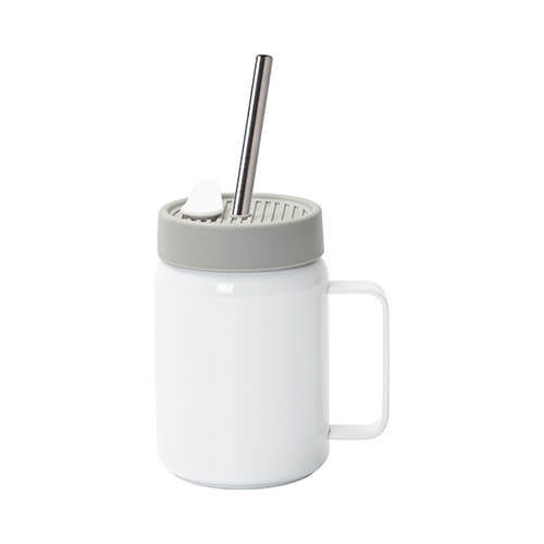 Čelična šalica od 480 ml s ručkom i sivim silikonskim poklopcem za sublimaciju
