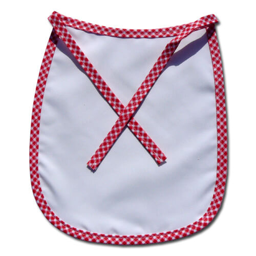 Bijeli vrhunski dječji podbradnik s crvenim kariranim rubom za sublimacijski tisak.