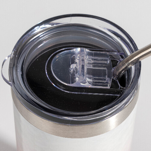 Šalica s 3D efektom Puff Clouda, dvostrukim stijenkama, prozirnim plastičnim poklopcem i slamkom od nehrđajućeg čelika.