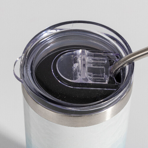 Šalica s 3D efektom Puff Clouda, dvostrukim stijenkama, prozirnim plastičnim poklopcem i slamkom od nehrđajućeg čelika.