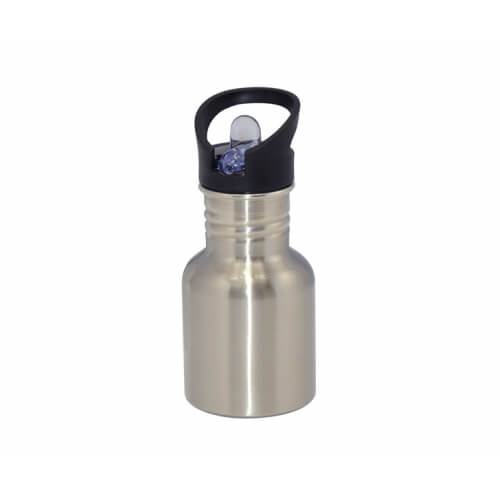 Strieborná cyklistická fľaša s náustkom a slamkou 400 ml Sublimačný termotransfer