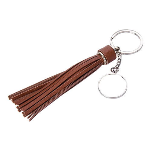Okrúhly prívesok na kľúče s dlhými strapcami - hnedý na sublimáciu