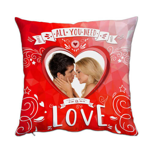 Dvojfarebná obliečka na vankúš s dizajnom "All you need" a rámom na sublimačnú tlač. Obliečka na vankúš so zipsom.