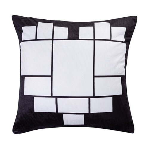 Jedna strana obliečky na vankúš s bielymi panelmi na fotografie, druhá v čiernej farbe. Podšívka so zipsom.