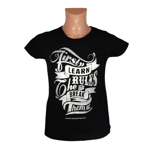 Flex-Soft (No-Cut) A-folie för enfärgade utskrifter i metalliskt silver. Folien låter dig göra utskrifter av komplexa former utan att behöva skära folien på en plotter och manuellt välja onödiga fragment av folie. Appliceringsfilm för nästan alla typer av tyger (bomull, blandade tyger, polyester, nylon etc.) och hårda ytor (trä, papper). Den kommer i standard, metallic och neonfärger.