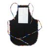 Dječja zaobljena pregača s džepom za print - crna s obojenim rubom - crno slavensko cvijeće