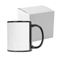 Sort 330 ml krus med hvid sublimeringsramme, med papkasse